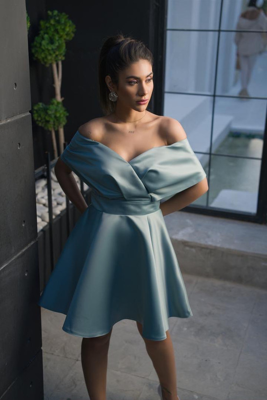 پارچهی ساتن درجهیک با درخشش طبیعی و لطافت بالا، روی اندام بهزیبایی مینشیند و در کنار برش کوتاه لباس، ترکیبی از ظرافت و جسارت مدرن را به نمایش میگذارد.